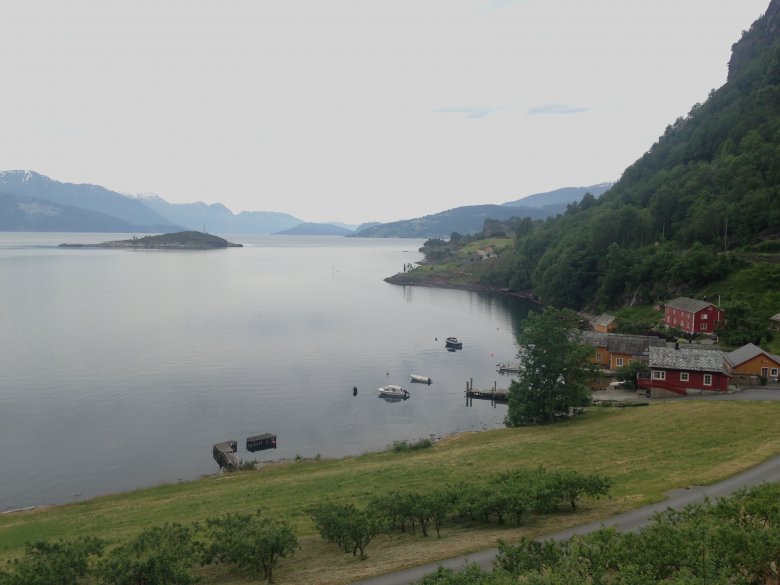 Ruszamy. Grys pryska spod kół. Dzisiaj wjedziemy w głąb lądu, po granitowych wzgórzach, przez tunele, zalesione doliny, wzdłuż brzegów Hardangerfjorden, aż do Eidfjord. Drogi są miejscami tak strome, że zastanawiamy się, czy damy radę wyjechać. Piękne widoki nagradzają trud.